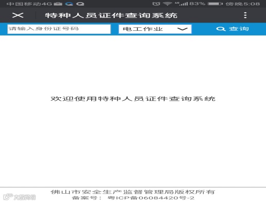 (二)外地特种作业证查询方式。在外地(以证件盖章区分发证地)考取的特种作业操作证(电工、焊工、制冷与空调作业等)可以直接通过在手机微信关注公众号“佛山安监”点击“查找服务”中的“特种作业人员证书”一栏,在“国家特种作业人员证书查询系统”中输入相关信息查询或通过电脑登陆系统,输入相关信息查询。(国家特种作业人员证书查询系统http://cx.saws.org.cn/),因系统数据有滞后性,如国家系统查询不到,需进一步向发证机关核实查询,才能确定证件的真伪。