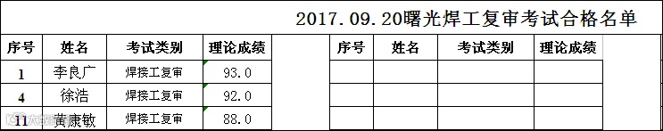 2017.09.20曙光学校焊工复审合格名单