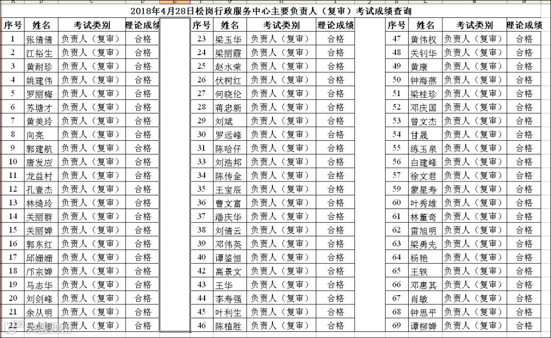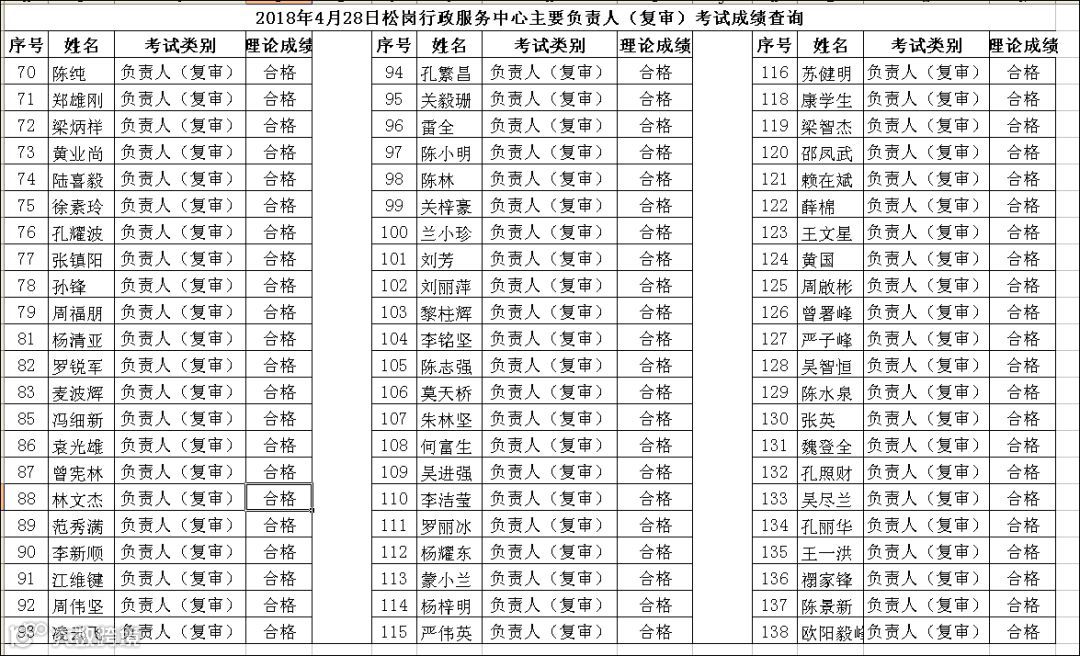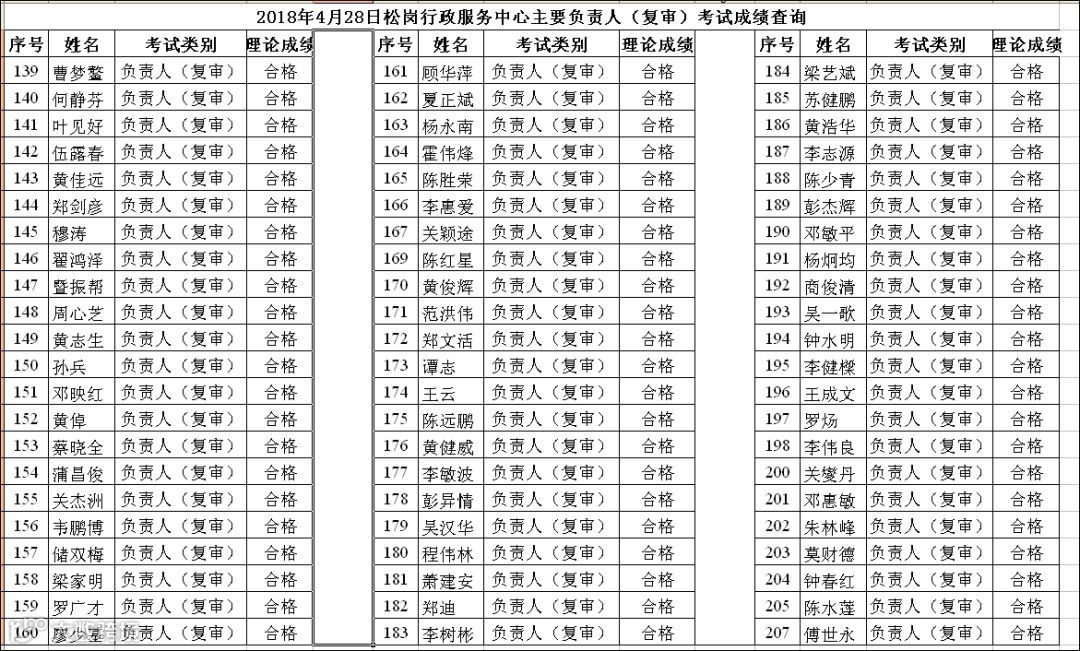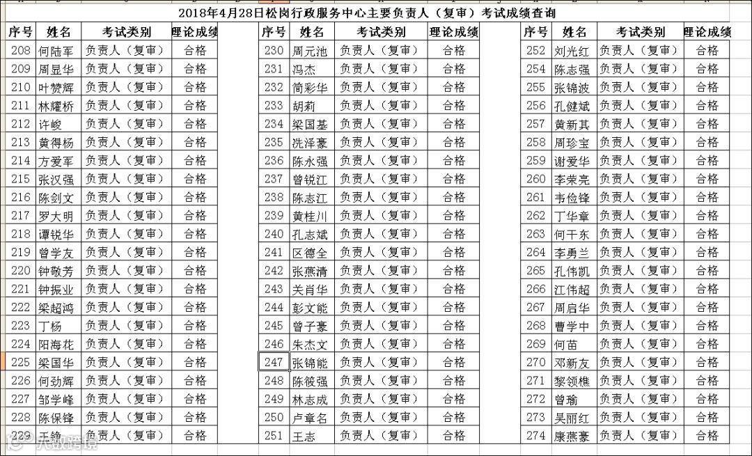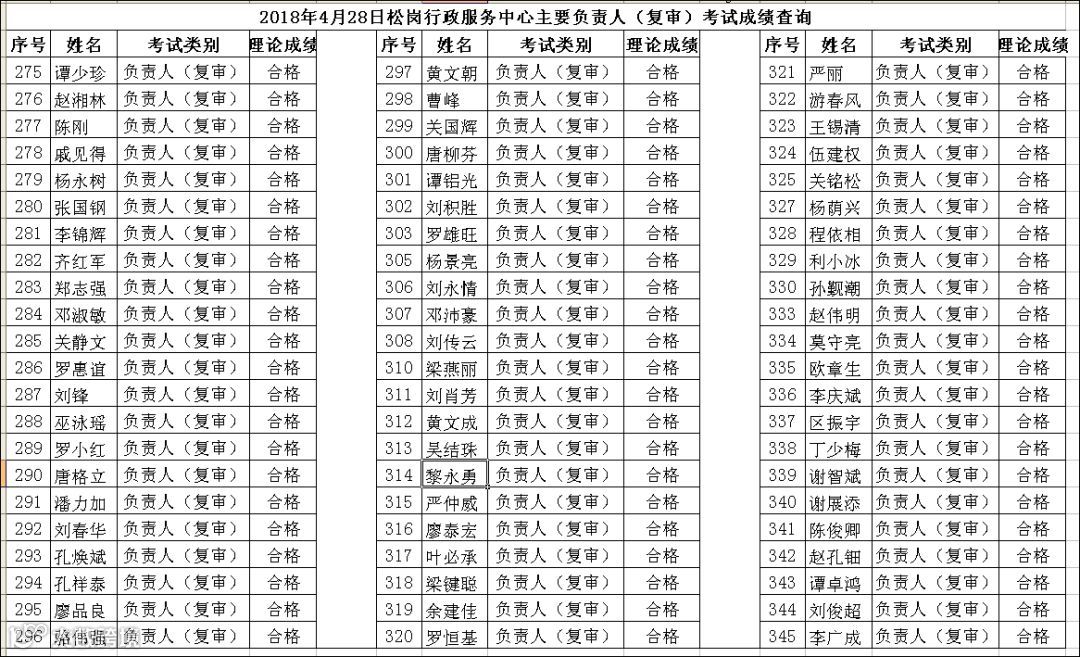 导读:2018.04.28松岗行政服务中心主要负责人(复审)考试成绩查询