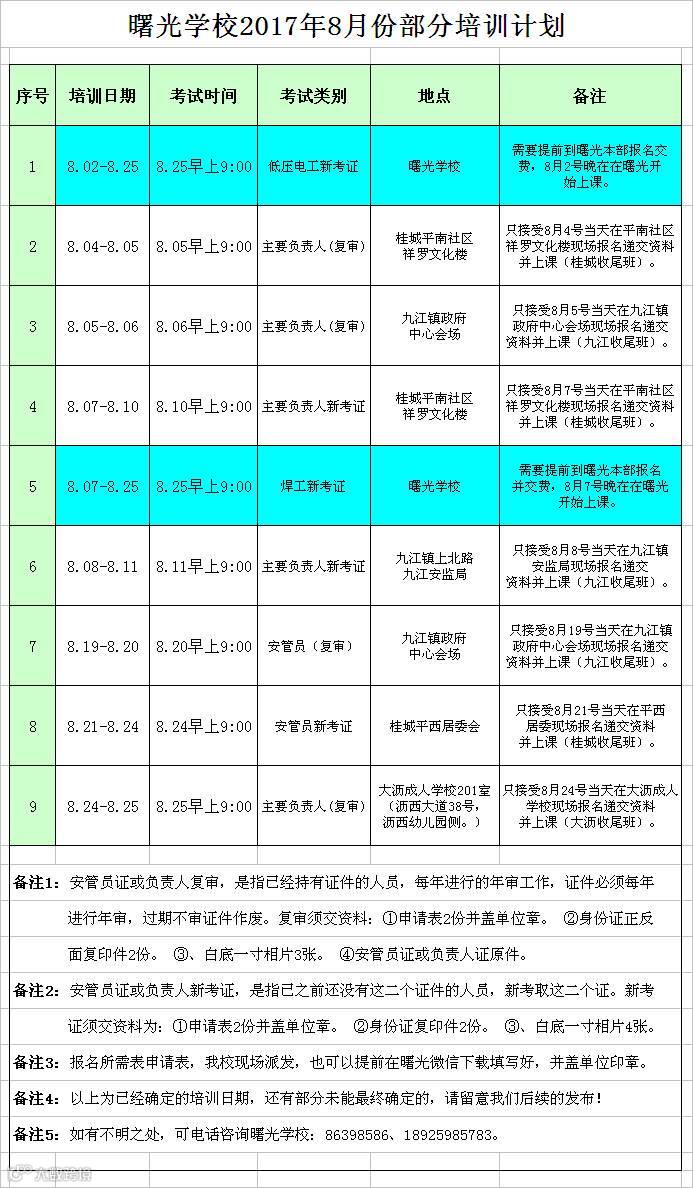 以下为8月份曙光学校最新更新培训信息,各镇街所组织的开班应都是收尾班了请抓紧,有需要的企业或人员请就近选择培训地点。如果企业所属镇街已没有培训班了的可跨镇街进行学习,请预先规划好路线提前出发到达现场报名,报名当天视场地情况员满即止:
