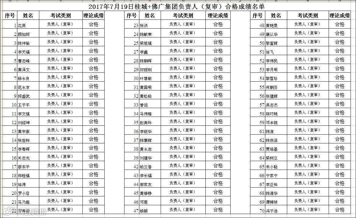 导读:2017.07.19桂城+佛广集团主要负责人复审合格名单