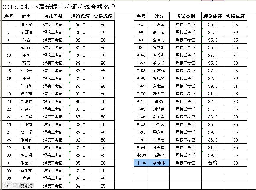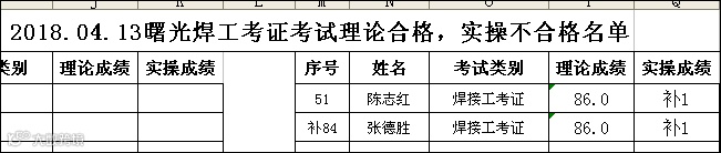 2018.04.13曙光焊工考证考试理论合格,但实操不合格名单