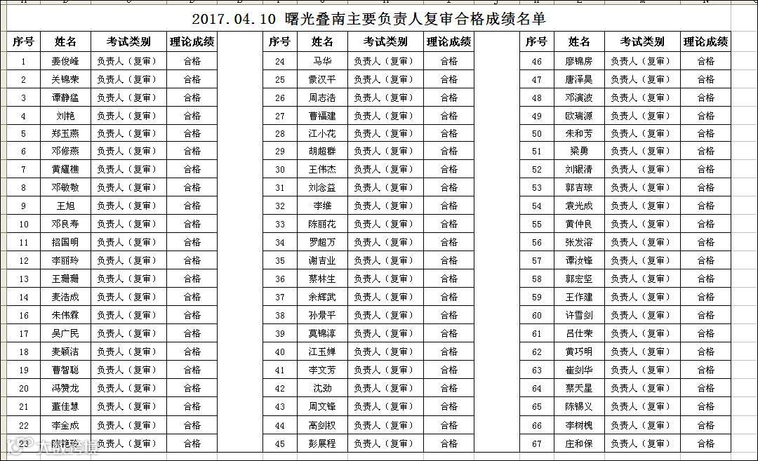 2017.04.10叠南社区主要负责人(复审)合格名单