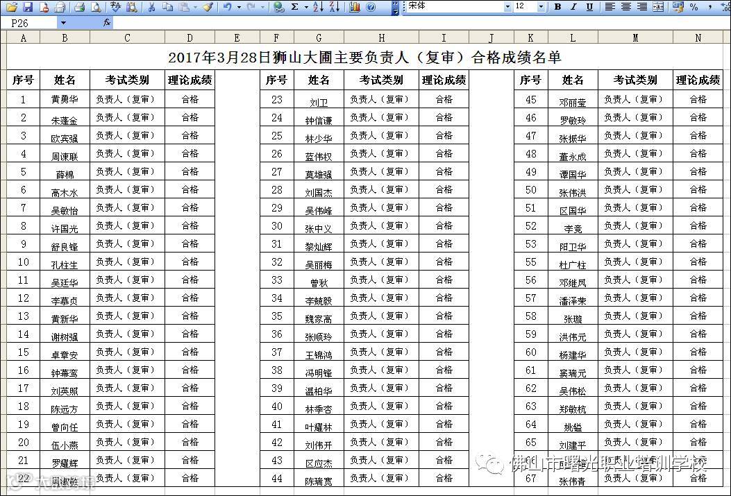 2017.3.28狮山大圃主要负责人(复审)合格名单