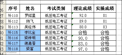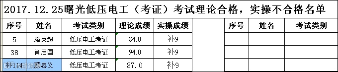 2017.12.25曙光低压电工(考证)考试理论合格,实操不合格名单