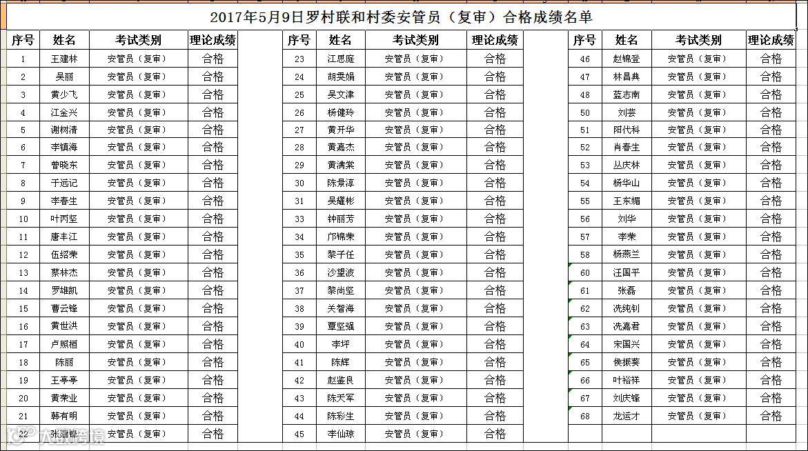 2017.05.09罗村联和村委安管员(复审)合格名单
