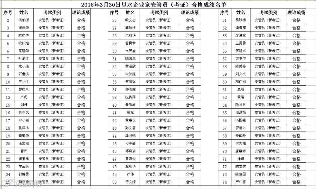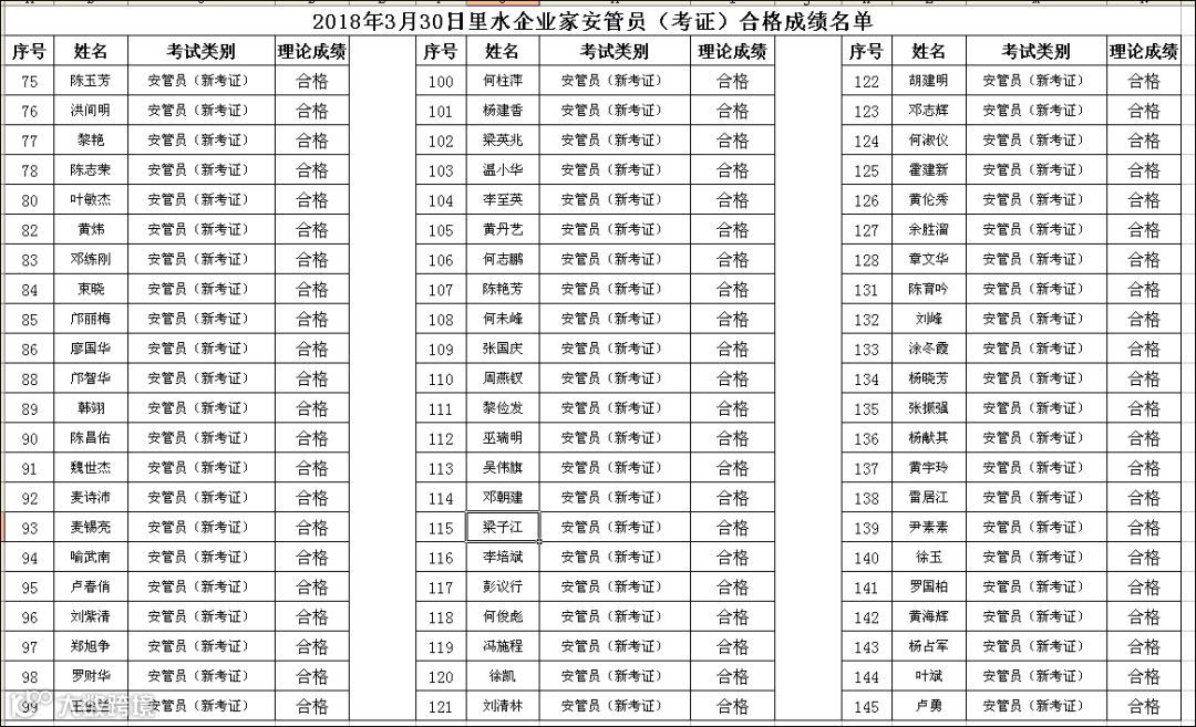 2018.03.30里水企业家安管员(考证)考试合格名单