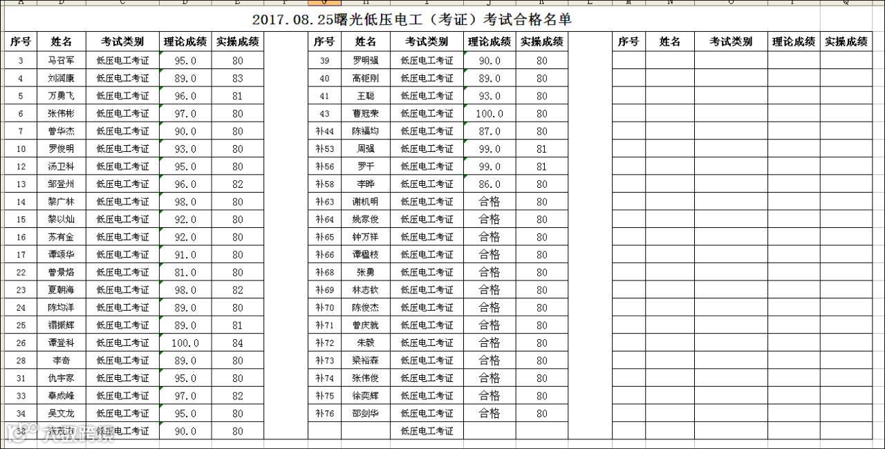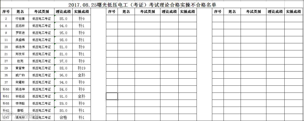 2017.08.25曙光低压电工(考证)理论合格,但实操不合格名单