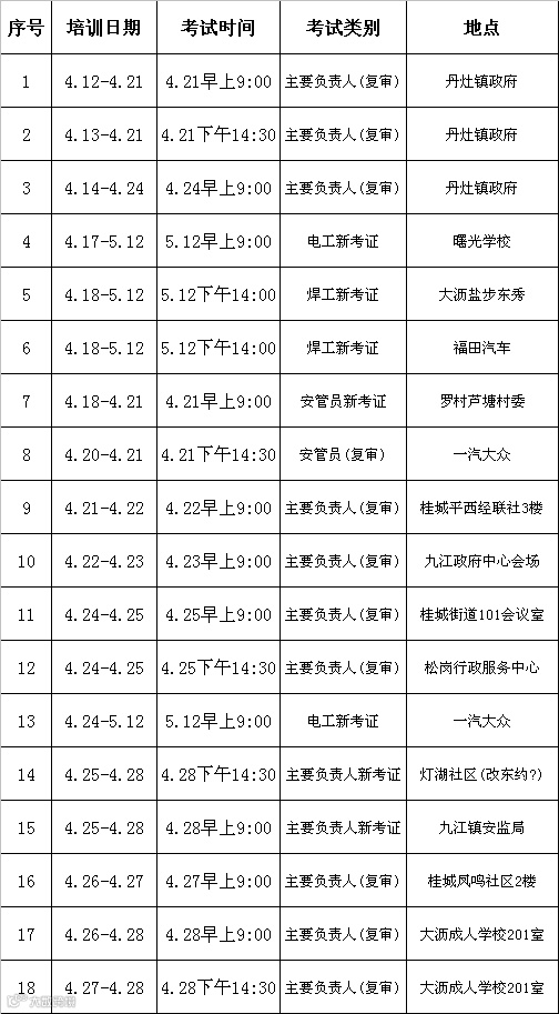 曙光学校4月近期开班信息如下,请有需要的企业或个人联系我校或所属镇街安监或村委详询了,曙光电话:86398586: