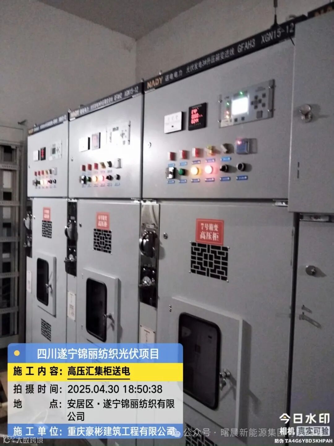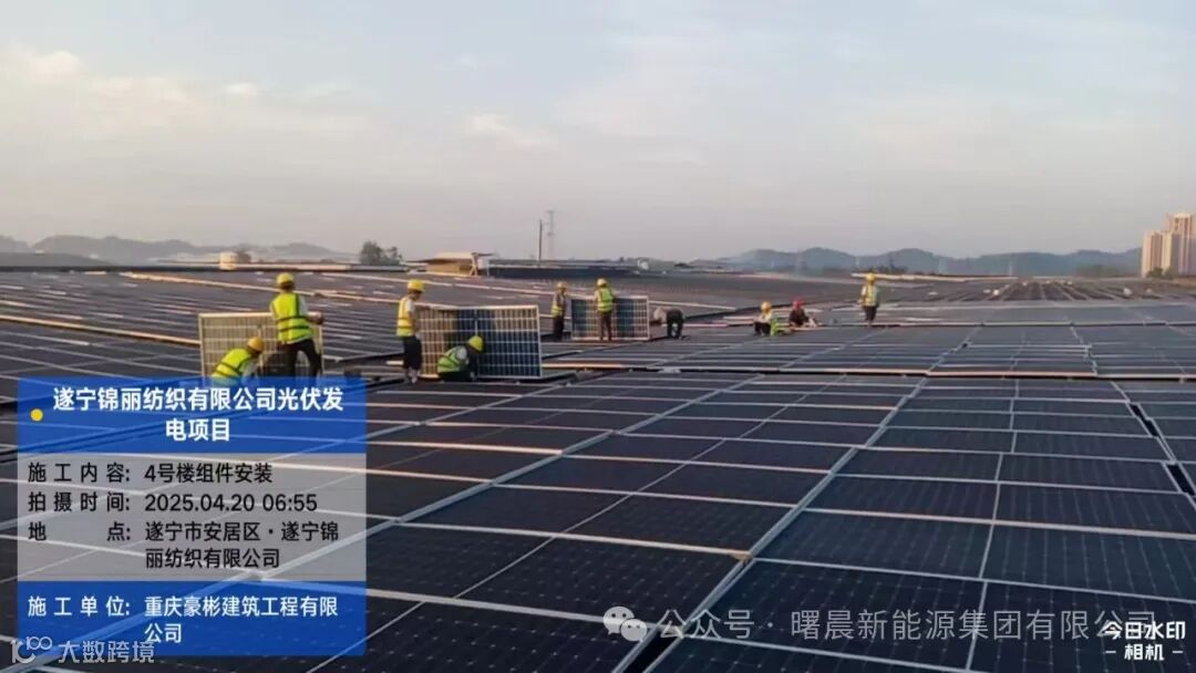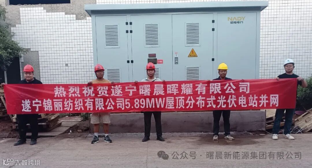 精诚所至金石开,竭尽全力捷报来。热烈庆祝曙晨集团四川遂宁锦丽纺织有限公司5.98MW屋顶分布式光伏发电项目,于2025年4月30日顺利并网。