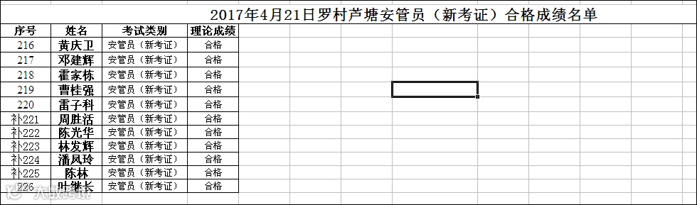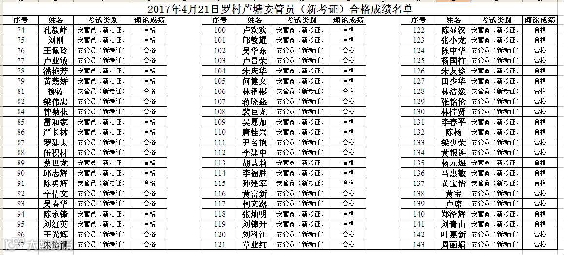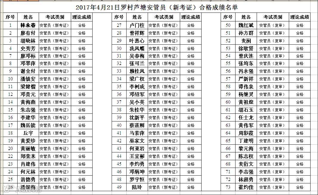 2017.04.21罗村芦塘村委安管员(新考)合格名单