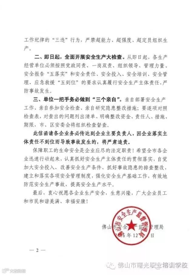 此信函请各企业务必传达到企业主要负责人,因企业落实主体责任不到位而导致事故发生的,将严肃追责。
