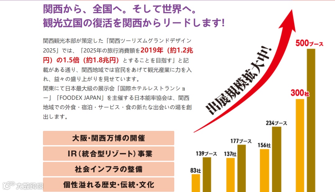2025年7月,由日本能率协会(JMA)、日本饭店协会、日本旅馆协会、国际观光日本餐厅协会、国际旅游设施协会主办的FOODEX JAPAN in Kansai 2025在日本大阪举行。此次展会一共有16个海外国家,393个公司参展,合计433个展位,共吸引了来自世界各地的大量宾客参加。
