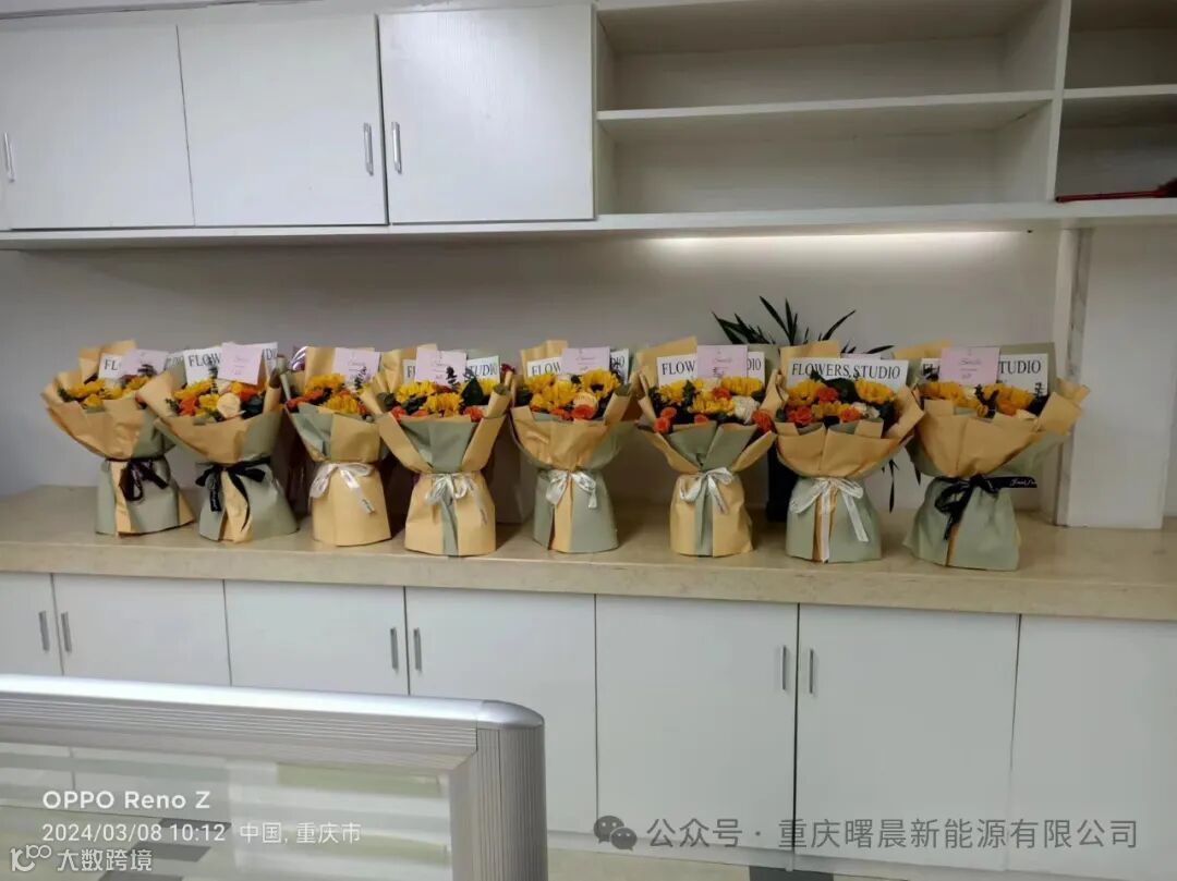 重庆曙晨新能源有限公司在此送上鲜花和礼物,祝全体女员工三八国际劳动妇女节节日快乐!以及愿所有的女性都敢于追梦,不受束缚,无畏无惧,成为自己的闪耀!希望所有女性的生活不止有鲜花和礼物,还拥有掌声和祝福!
