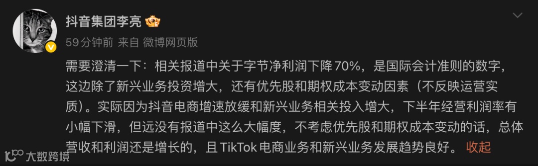字节出现净利润跌超70%而海外营收增长近50%的“剪刀差”。