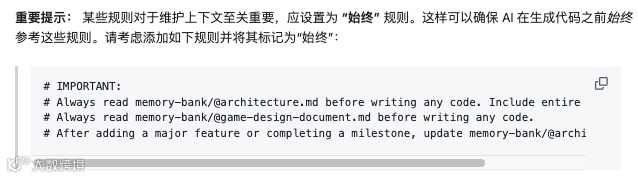 AI 的规则里写死了一条:每次写代码之前,先把 memory-bank 里的所有文档读一遍。