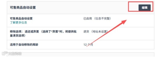 路径:进卖家平台,右上角【设置】→【亚马逊物流】→【可售商品自动设置】→【编辑】,两个选项: