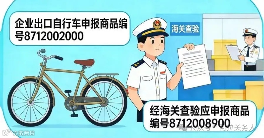 A公司申报出口自行车总价14万美元,错误申报商品编号为8712002000(退税率13%,无监管条件),实际应归入8712008900。两编码退税率及监管条件相同,仅影响海关统计准确性。