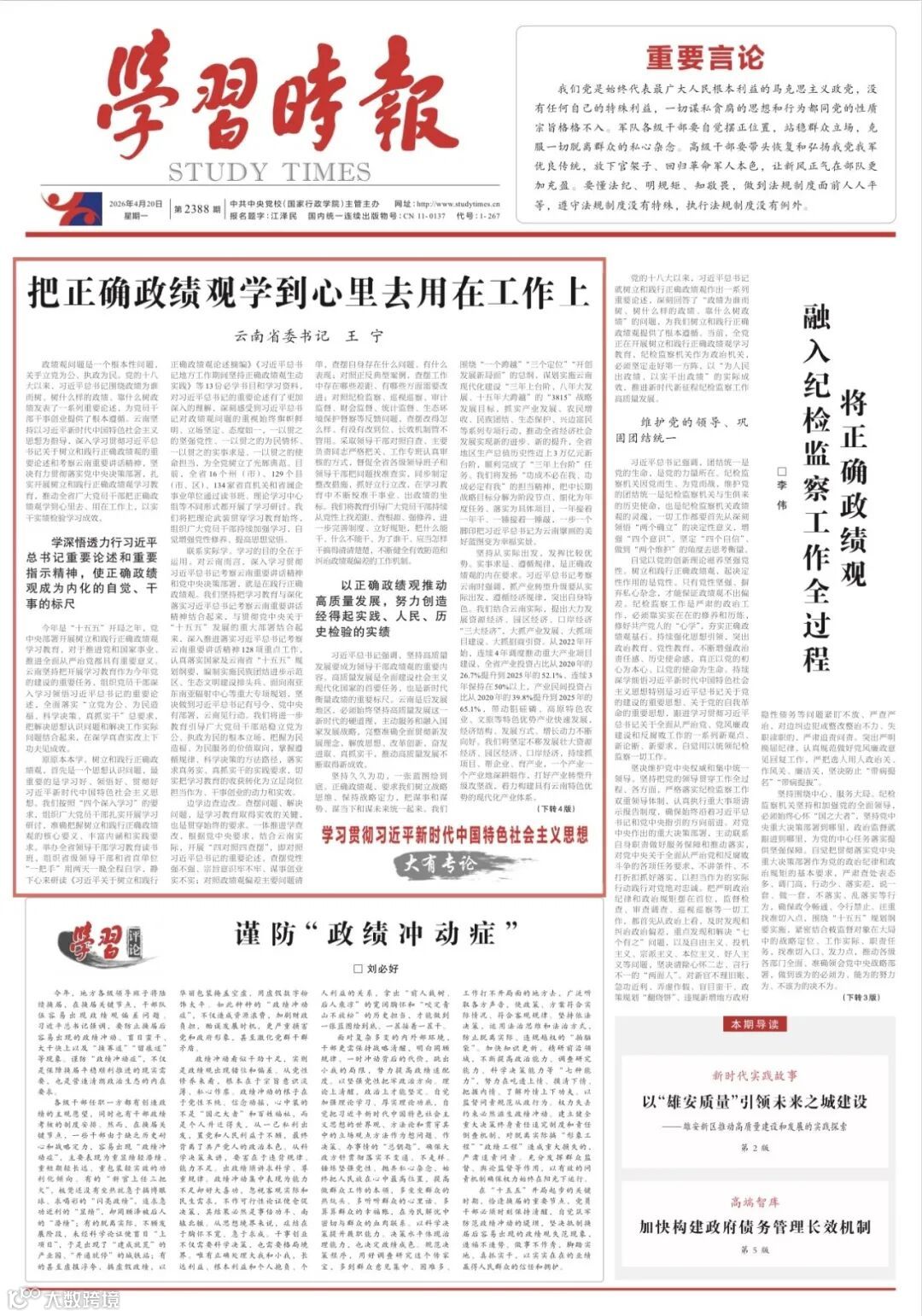 树立和践行正确政绩观是终身课题。云南将持续深化学习教育,引导党员干部为人民出政绩、以实干出政绩,奋力开创发展新局面。