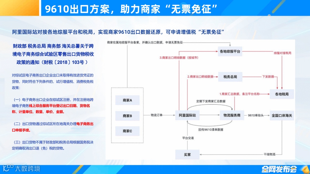 阿里国际站9610方案对接税务系统,实现出口数据还原。商家可直接申请增值税"无票免征",无需复杂备案及额外申报成本,系统自动生成合规出口凭证,有效应对跨境电商税务新规。