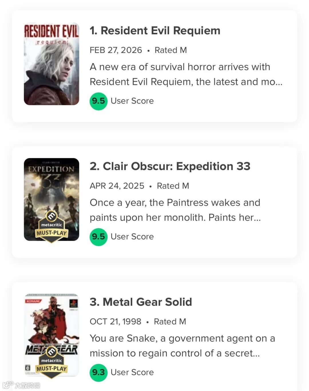 发售初期,《生化危机9:安魂曲》以9.5分登顶Metacritic用户评分榜,20天销量突破600万,创系列最快销售纪录。尽管面临游戏流程较短、设计逻辑瑕疵等质疑,社区评分仍保持高位。
