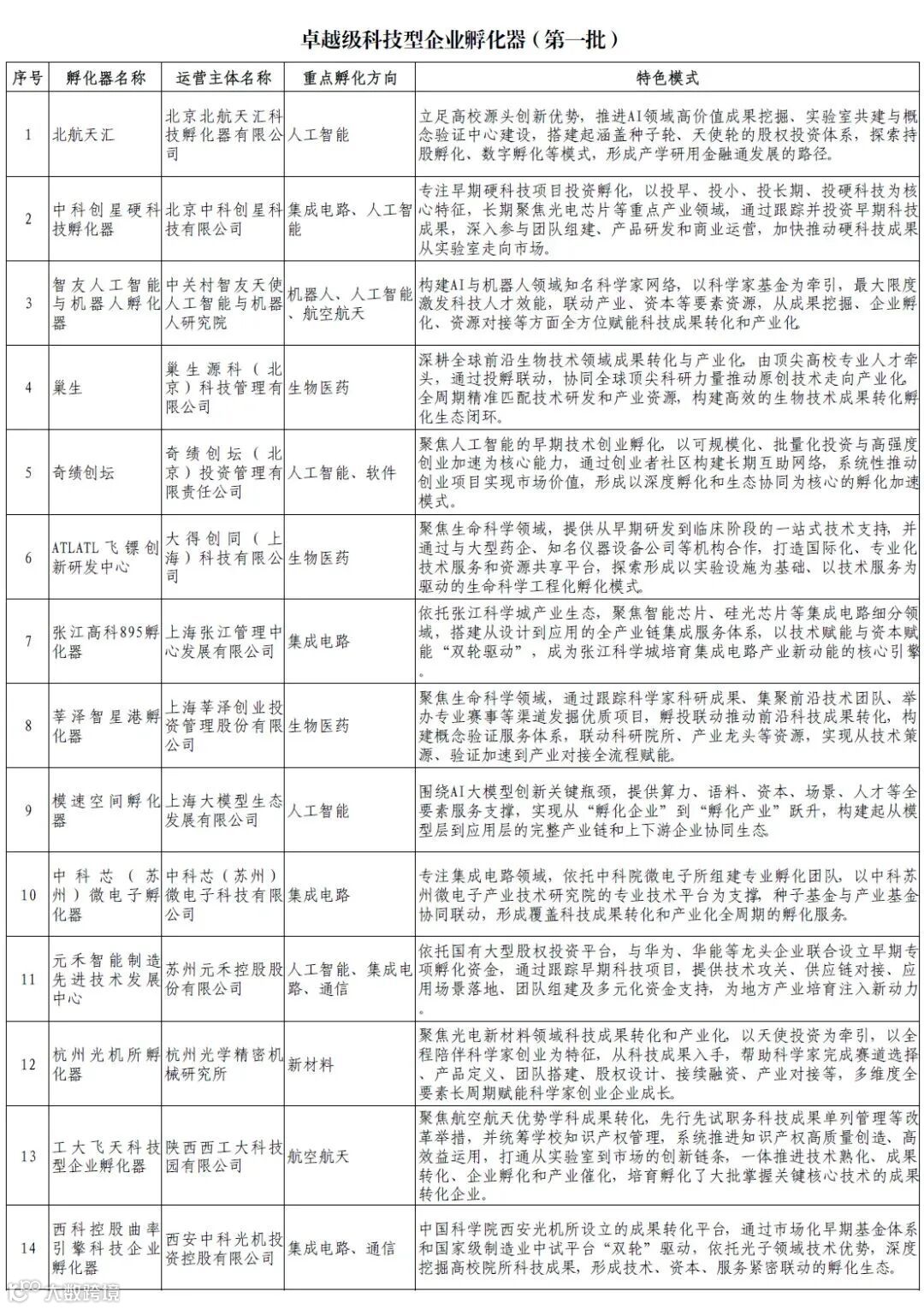 14家卓越级孵化器突出"强产业属性、强服务功能、强人才牵引、强投资赋能、强加速效应"特征,在高校成果转化、前沿技术孵化等领域具备显著优势,致力于建设国际一流的科创产业融合示范载体。