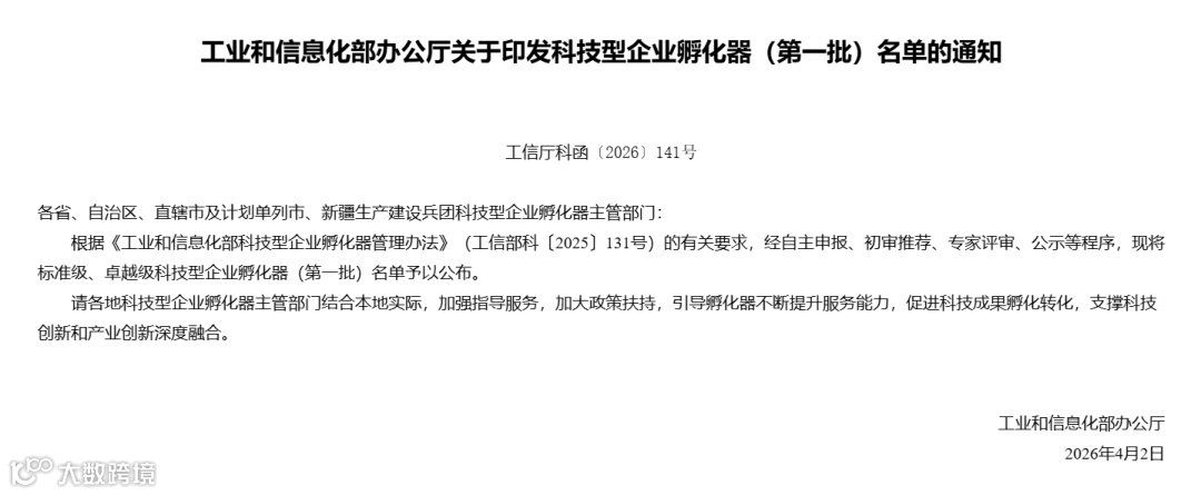 工信部近日公布首批科技型企业孵化器名单,包括标准级402家、卓越级14家。该认定工作依据《工业和信息化部科技型企业孵化器管理办法》,遵循"做优存量、做强增量、分类培育、提升能级"原则,旨在推动科技成果转化与企业孵化,助力传统产业升级和新兴产业发展。其中标准级孵化器夯实创新创业基础服务,卓越级孵化器聚焦技术成果转化,共同构建科技创新与产业创新融合生态体系。