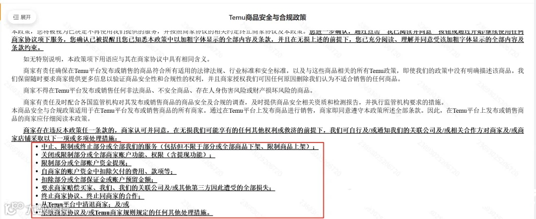 Temu此次强制要求签署该协议,预示着平台即将采取更严格的合规管控。一旦违反法律法规或平台规则,卖家将面临以下处罚:商品下架、功能与提现限制,直至店铺被清退。因此,小盈建议卖家应尽快完成相关资质的完善工作,以避免可能面临的处罚后果。