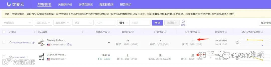 可以看下面两个不同的产品,一个广告位置在第5名,另一个在38名。众所周知首页顶部的点击率是最高的,以此类推。那么能够展示在优质的广告位是非常重要。