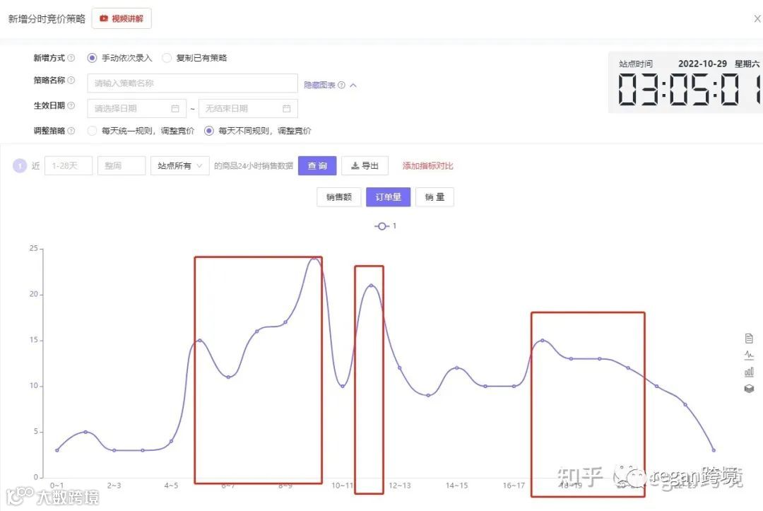 我们可以通过ERP工具来得到具体的出单高峰时间段(站点时间),然后根据高峰时间段进行分时调价,将我们的产品主要展示在真正的有需求客户群体面前。