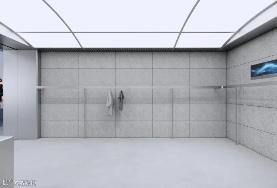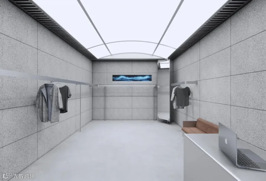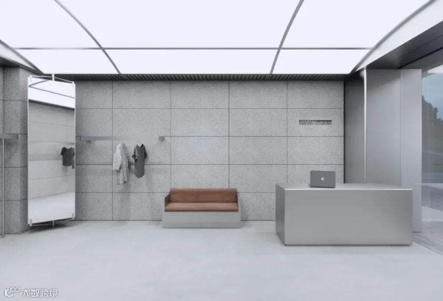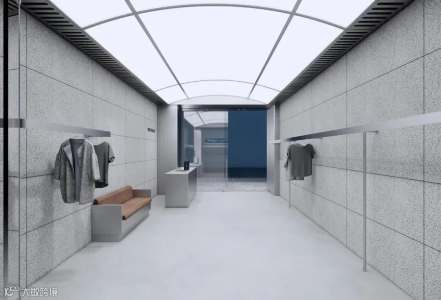 无主灯天花搭配轨道射灯精准洗亮服饰轮廓,不锈钢收边与开放式货架强化现代工业感。整体纯净冷冽,让服装成为空间唯一焦点,彰显品牌不彰自显的潮流态度。