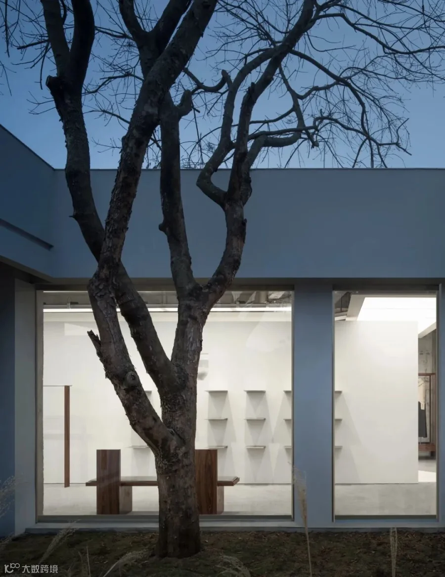 这个隐于树林中的项目已经不是简单的理解为一个庭院,还延伸囊括了周围的树林空间。这是一个融入并吸纳了周围自然环境的没有边界的零售空间,其景观特色在于千变万化的光影。