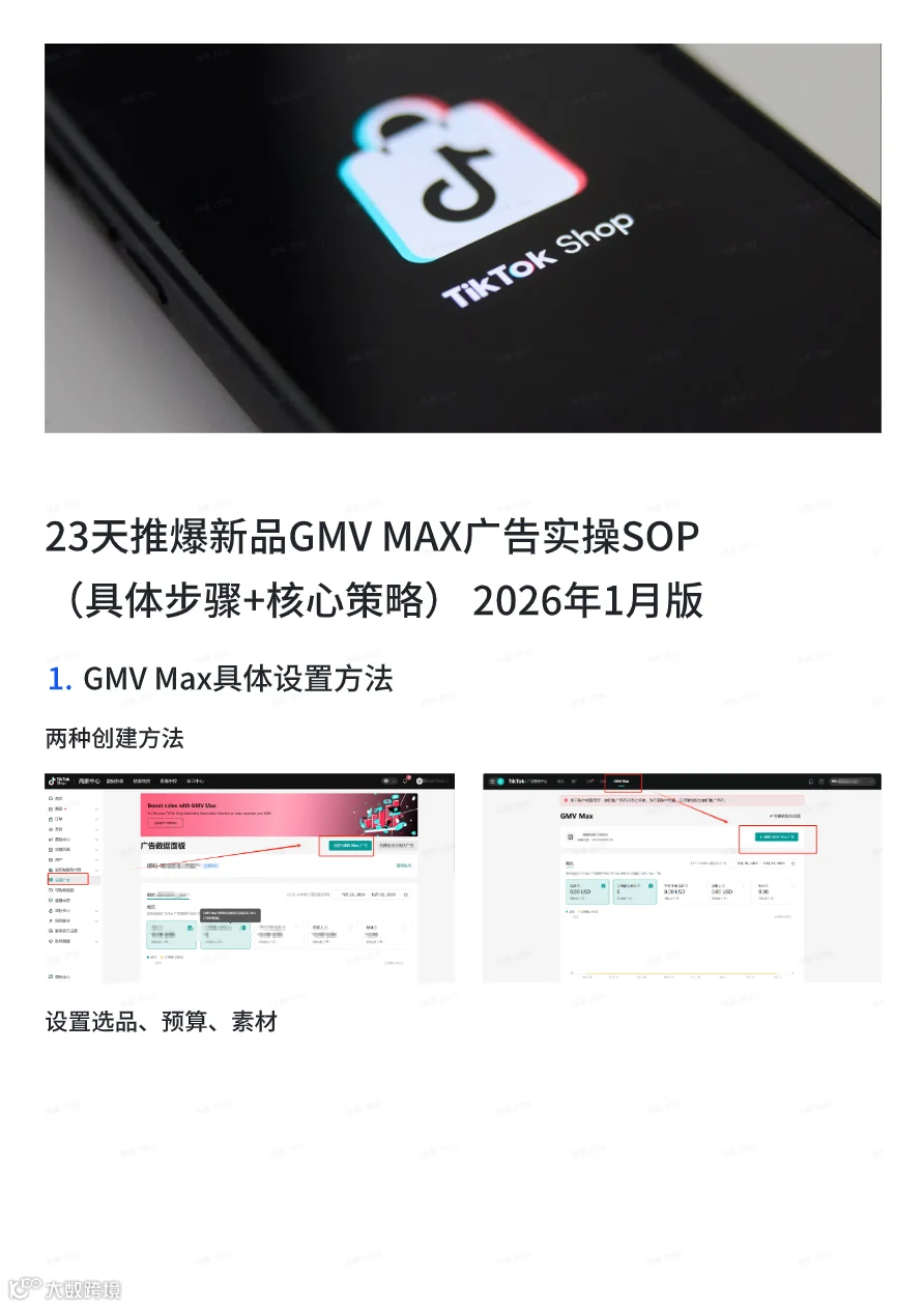 本文件深度解析TikTok Shop GMV Max广告系统运营策略,指出随着平台算法迭代,商家需从手动广告转向Product GMV Max模式,通过"放量优先、ROI后置"实现新品冷启动与爆款放大。