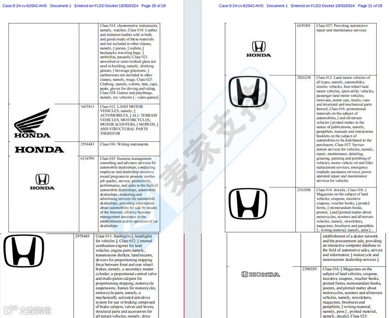4月初, Brickell律所代理特斯拉连起六案,冻结了上千涉案店铺,让不少跨境卖家胆战心惊。时隔半年,Brickell律所持续发力,再度归来,代理本田多个商标连起3案!目前案件处于立案阶段,暂未TRO冻结,跨境卖家速速相应排查!