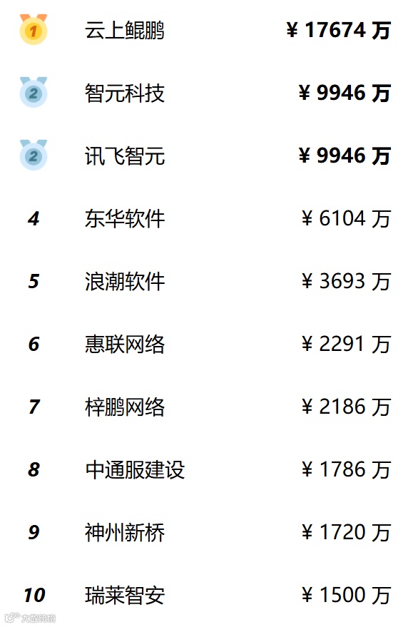 云上鲲鹏以1.77亿元位居第二,云上鲲鹏的中标项目不仅涵盖了大型企业的数字化转型项目,还包括了政府机构的智能化升级项目。云上鲲鹏凭借其在人工智能领域的深厚积累和技术优势,成功中标了多个具有重要影响力和示范意义的大模型项目。