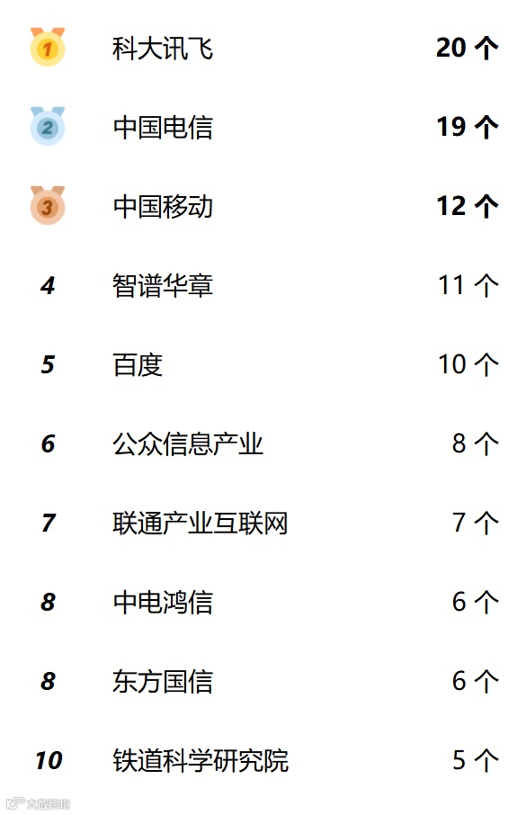 位居第二和第三的分别是中国电信和中国移动,中标数量分别为19个和12个。作为国内领先的电信运营商,中国电信和中国移动在智能化转型和数字化转型方面持续投入,不断提升自身的技术能力和服务水平,以满足客户日益多样化的需求。