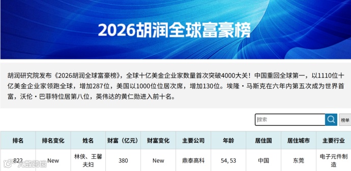 图源:2026胡润全球富豪榜