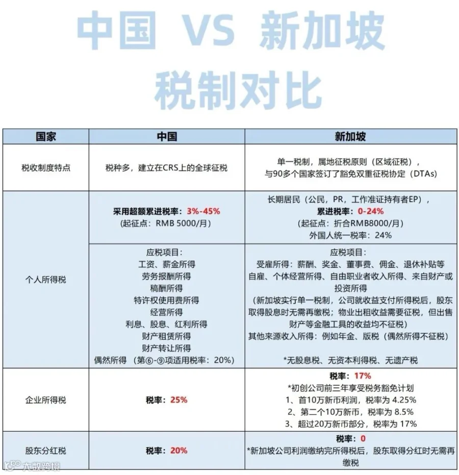 - 属地征税原则:仅对新加坡境内收入征税