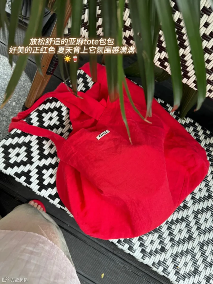 一点点小心思🫶整只亚麻tote包营造出高级又自然的松弛感!随便搭配都非常好看~