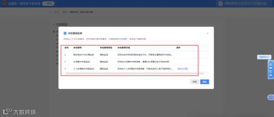 7、查看未办结事项,处理好除“个人所得税未申报监控”外的其他事项,点击“刷新”