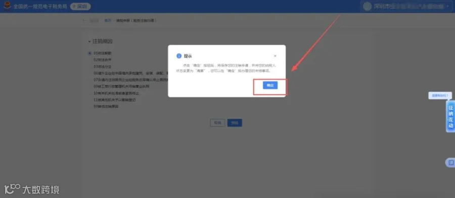 11、返回清税注销界面,点击“刷新”,点击“确定”,等待系统提交