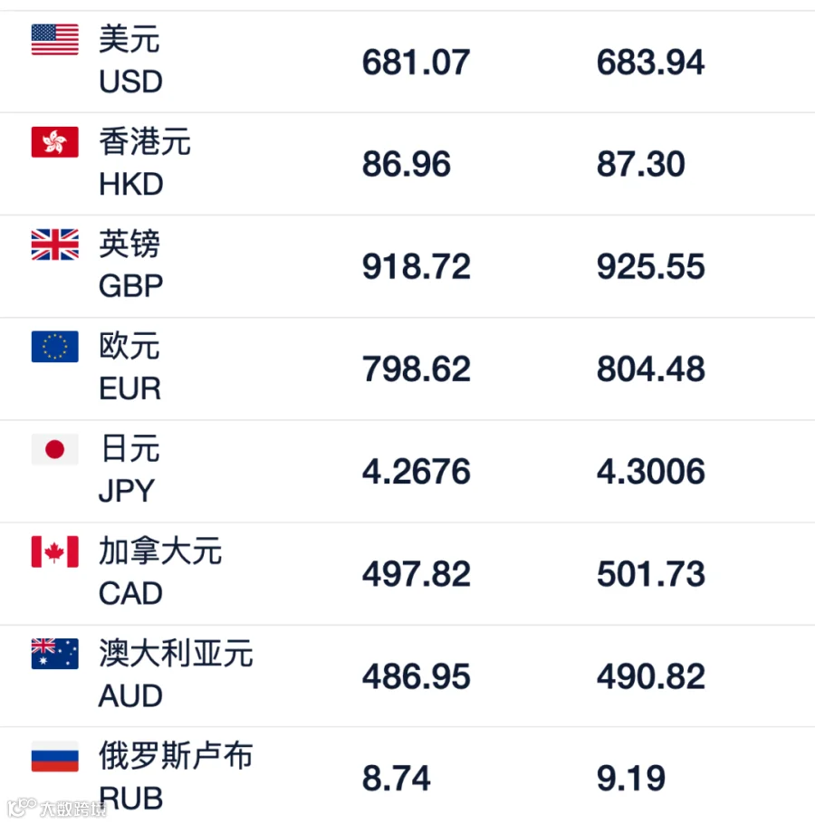 今日汇率