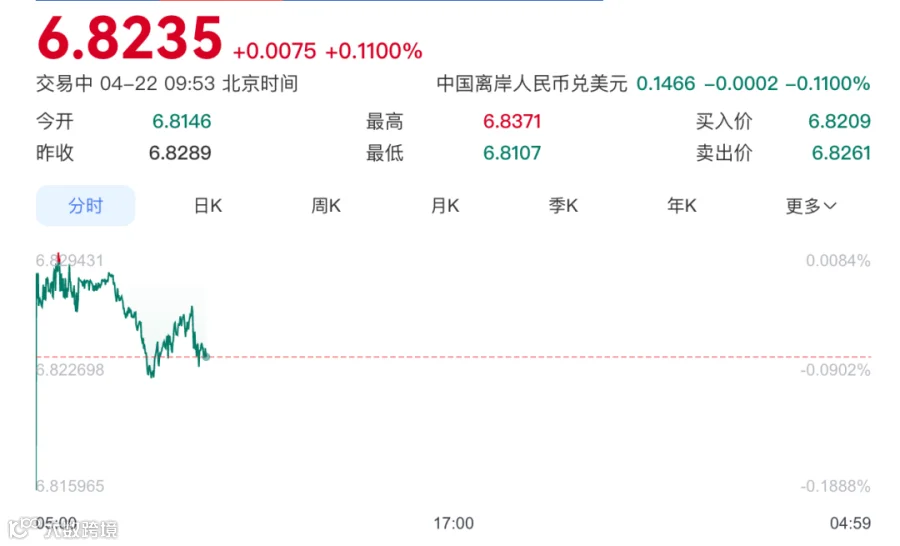 美元兑离岸人民币汇率