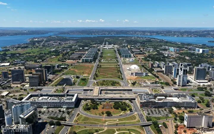 4月19日电)无人机拍摄显示巴西利亚城市中轴线景观,由新华社记者摄。