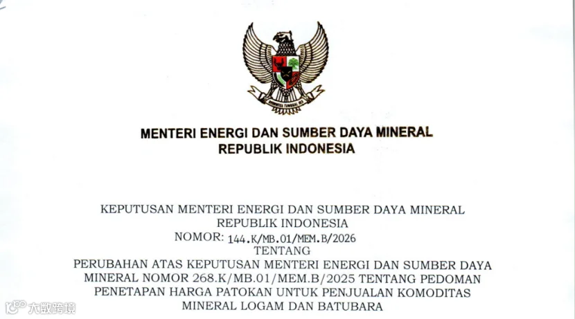 印尼能源与矿产部正式发布第144.K/MB.01/MEM.B/2026号部长令,全面修订金属矿产与煤炭基准价(HPM)核算体系。此次改革涉及矿业定价逻辑、成本结构及盈利模式的根本性调整,尤其以镍矿计价规则变革影响最为深远,直接关系到中资企业的采购成本、税务核算、合同签订及投资回报。