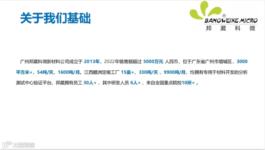 大家好,今天我要向大家介绍的是广州邦葳科微新材料有限公司、江西赣州日纺新材料有限公司的生产事业部为广大客户OEM代工生产服务。