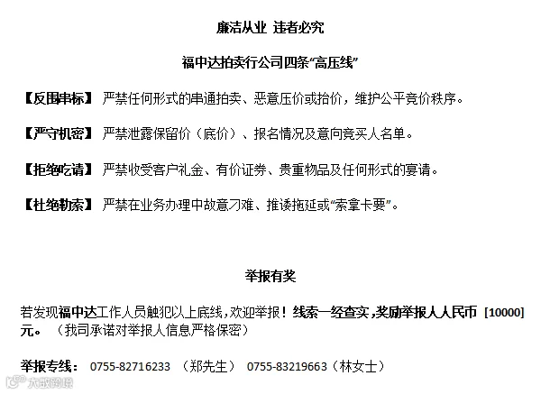 (3)特别提醒:①中标者对标的物的后继使用或处理应遵照国家和政府颁发的相关法律法规和条例开展。②如果标的物中存在与国家环保部门颁发的废弃电器电子产品处理目录一致的对象(如空调、电视等),如中标者需对该部分对象进行“中华人民共和国固体废物污染环境防治法”和“废弃电器电子产品回收处理管理条例”相关定义范畴内的处理活动,则应严格遵守“广东省固体废物污染环境防治条例”的相关具体要求(包括必要的处置资质要求和跨省转移程序要求)。③所有参与竞买者视同完全同意并将严格执行上述①和②的相关要求。