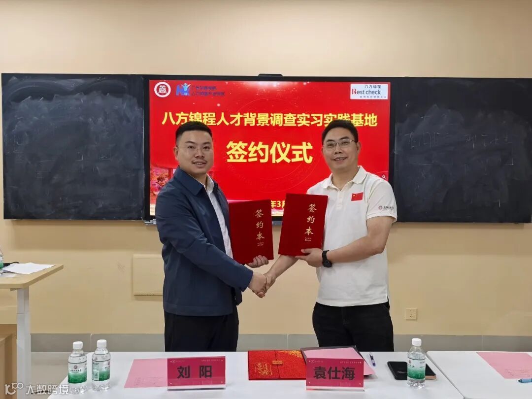 在仪式现场,校方领导与八方锦程共同签署了 “八方锦程人才背调实习实践基地” 合作协议。这不仅是教学与实践的深度融合,更是将企业真实业务场景、智能背调系统及行业前沿标准引入校园课堂。