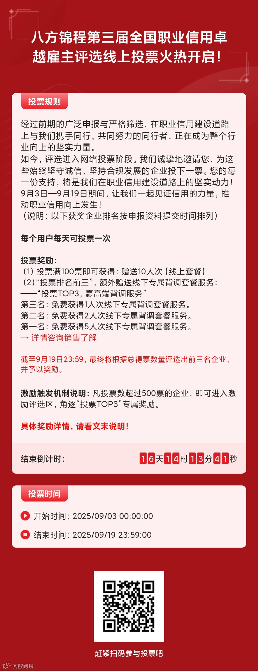 (2)“投票排名前三”,额外赠送线下专属背调套餐服务: