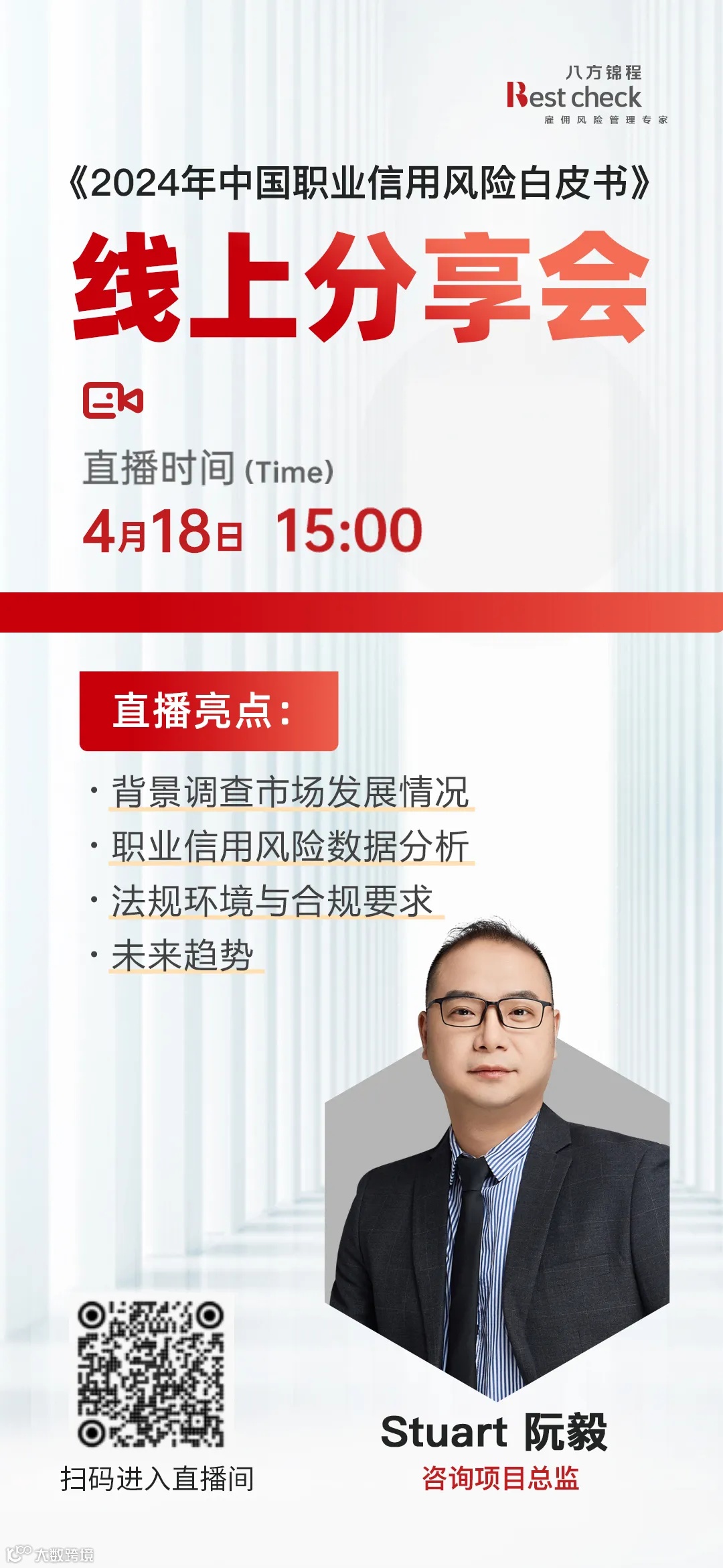 为了更好地帮助企业及HR了解雇佣过程中的职业信用风险,八方锦程人才研究院基于八方锦程背景调查SaaS系统的数据,开展对雇前调查(境内六大行业、境外调查)、在职人员行为风险排查数据以及常见核查项目等维度的统计与分析,结合2021-2023年度的对比,让企业深入了解人才风险管理的问题与表现特性,在信息不对称的用工市场中,企业可采取有效措施来加强雇佣风险管理的防范力度,完善高质量人才管理。